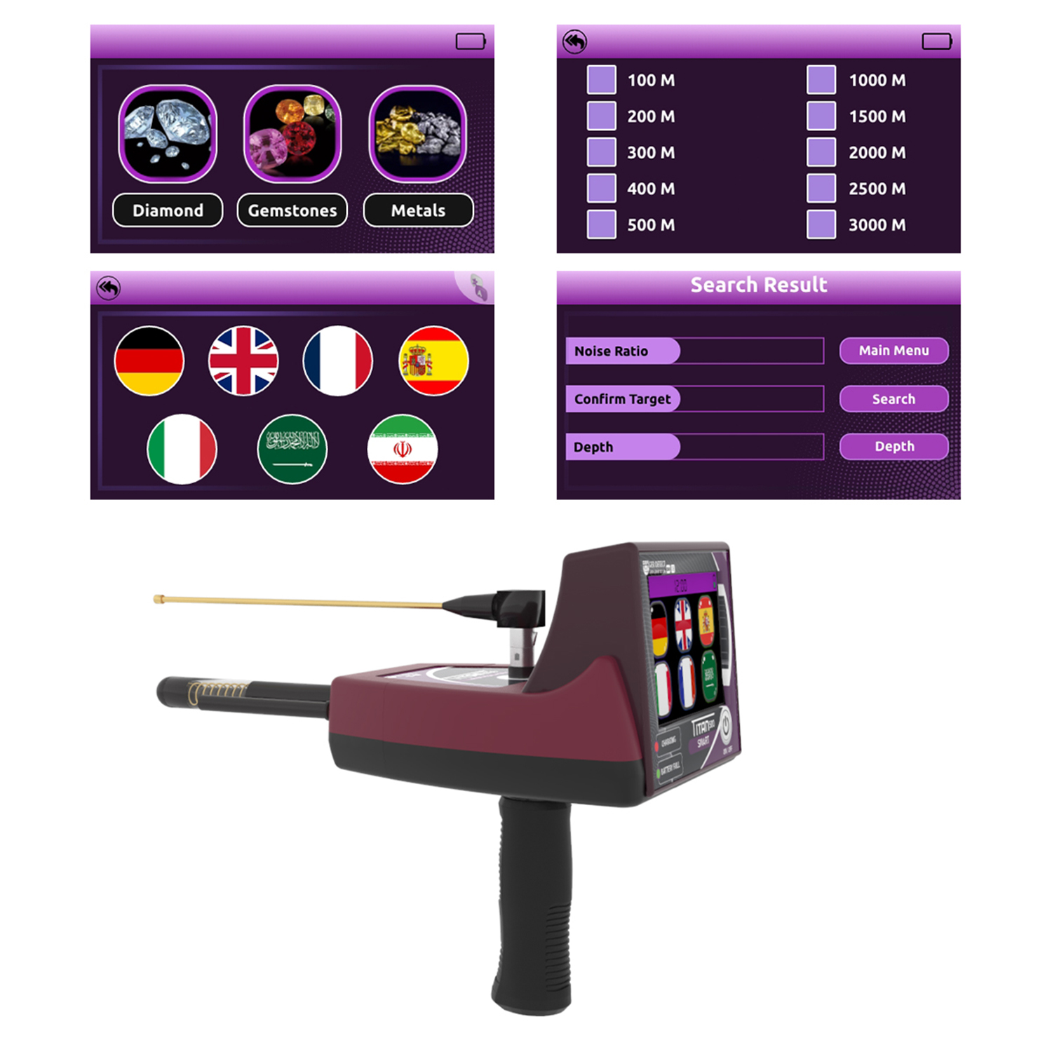 جهاز TITAN 500 SMART بأربع أنظمة بحث مختلفة: متخصص لكشف الذهب والمعادن الثمينة والكنوز الدفينة والألماس والأحجار الكريمة تحت الارض